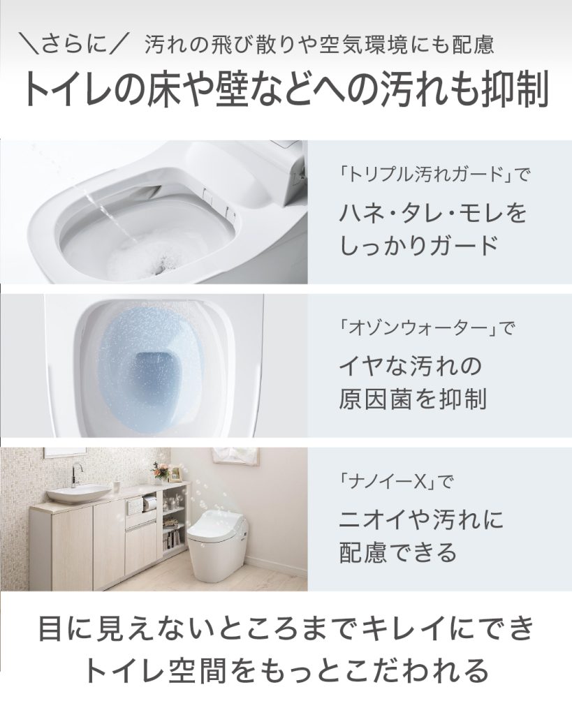 ハネ・タレ・モレを抑える「#トリプル汚れガード 」、除菌効果のある「オゾンウォーター 」や、ニオイや汚れを抑制する「ナノイーX 」など、見えない部分にも配慮できるのでワンランク上の心地よさを実現可能。