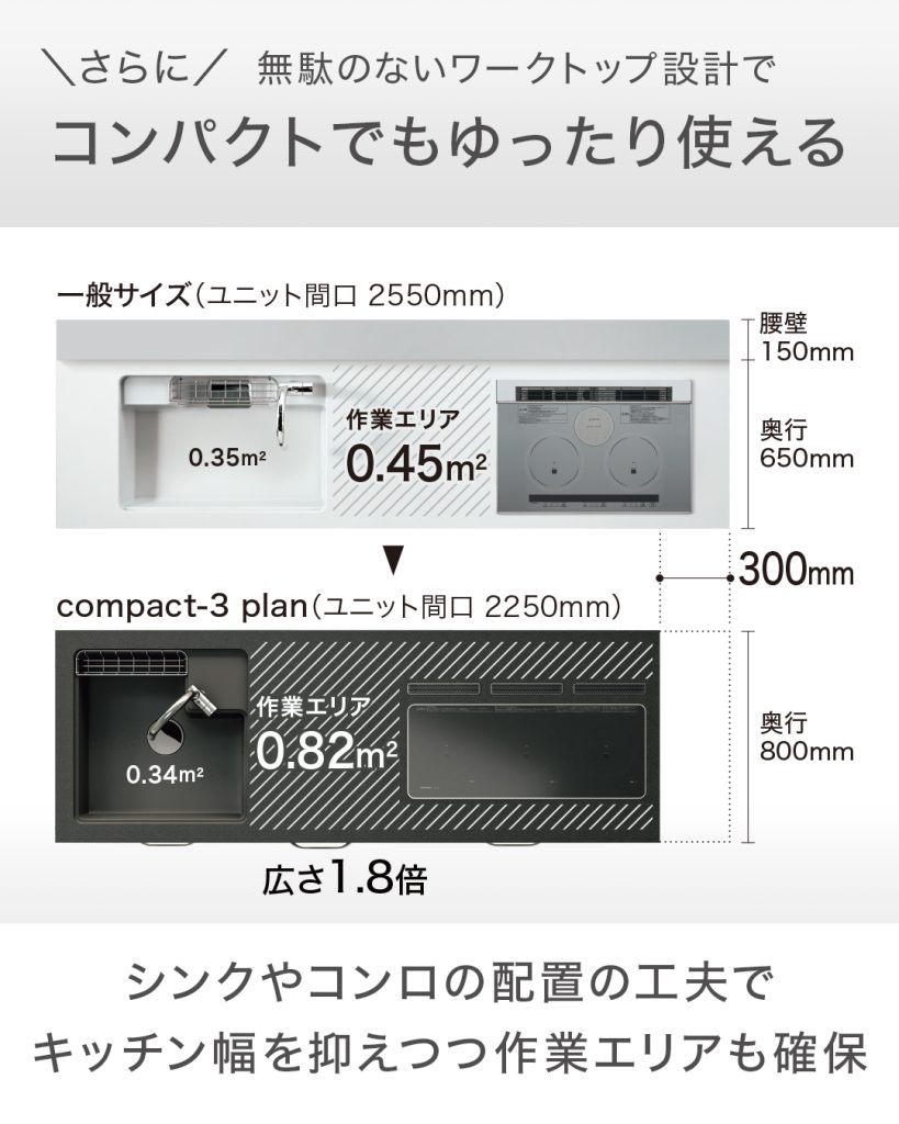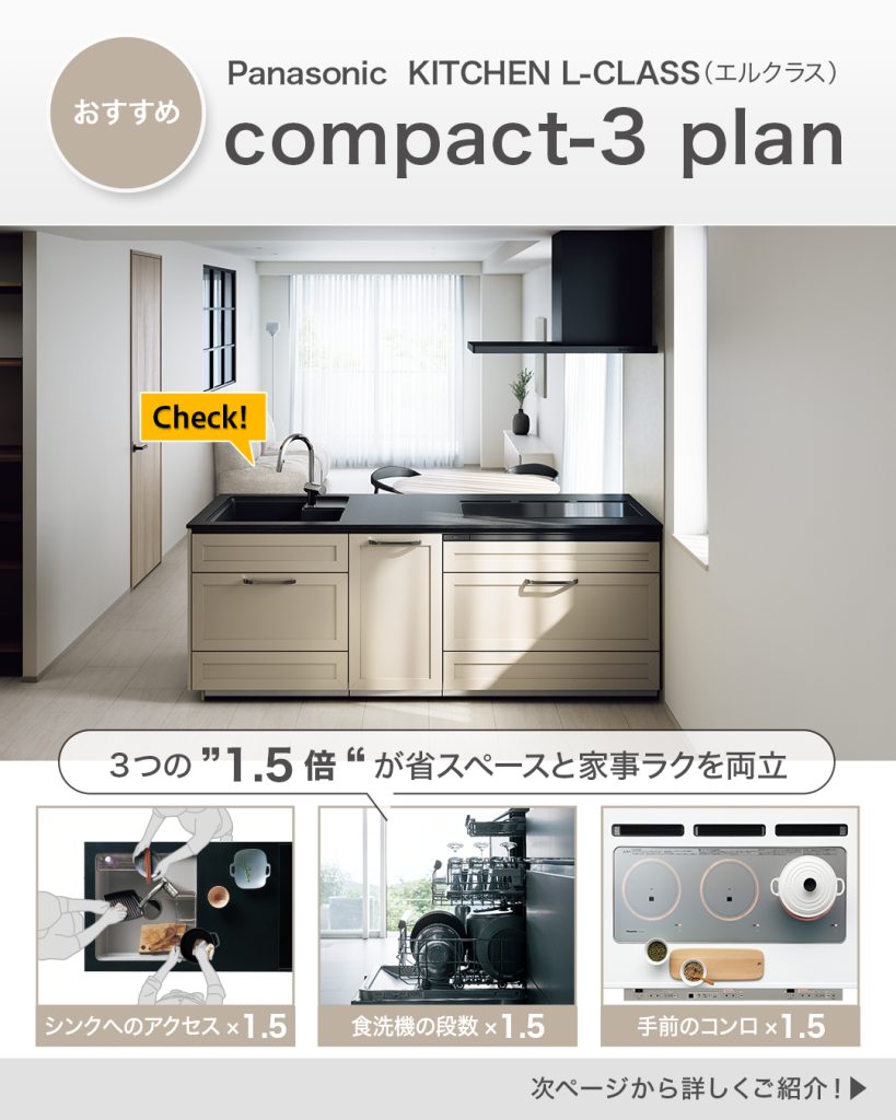 「パナソニックキッチン」の新プラン「compact-3 plan」。