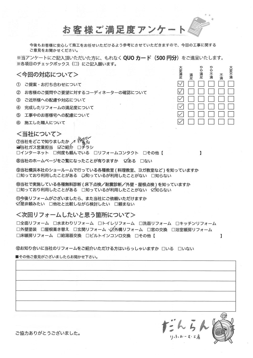 お客様の声|リフォームご満足度アンケート(トイレリフォーム)