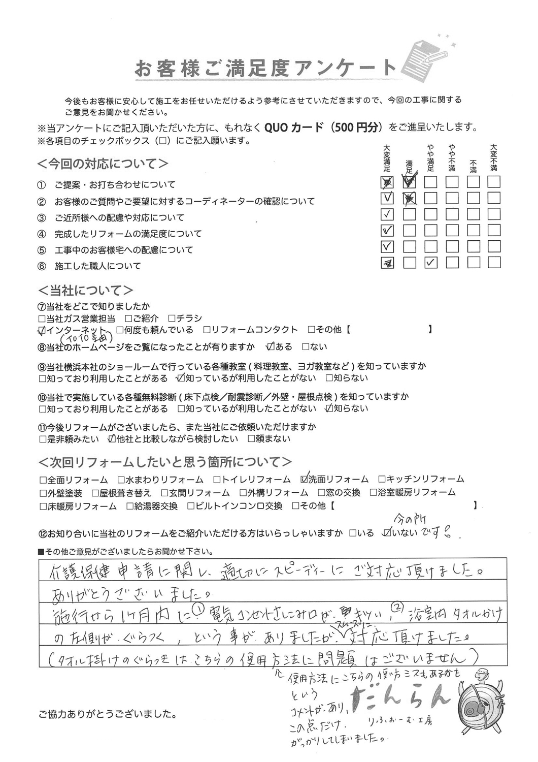 お客様の声|リフォームご満足度アンケート(浴室リフォーム他)