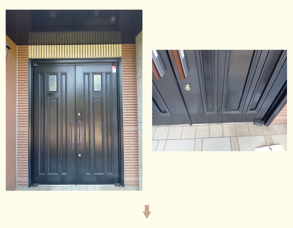職人さん手際の良さもあり、大きめのこの玄関ドアで1.5日程で完了しました。